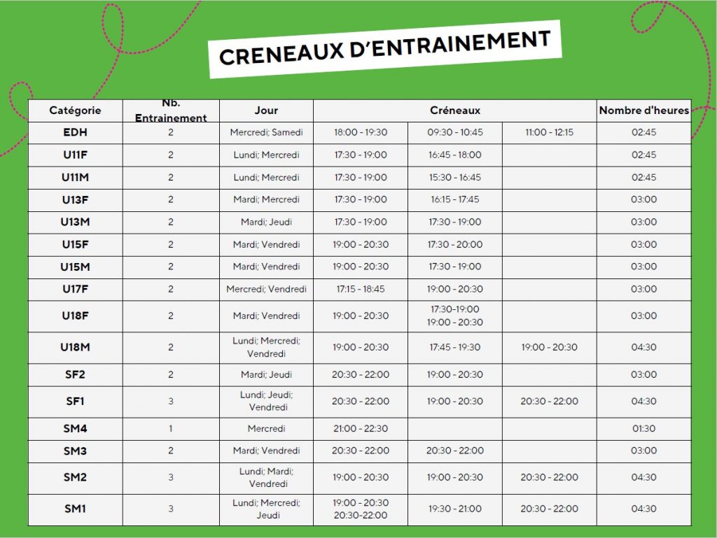 Concernant les autres catégories, nombreuses sont les sollicitations pour des essais, afin d’assurer un suivi de qualité tant pour les nouveaux licenciés que pour les mutations, veuillez ne pas vous présenter à l’entrainement sans avoir au préalable adressé un mail et/ou avoir échangé avec un encadrant.